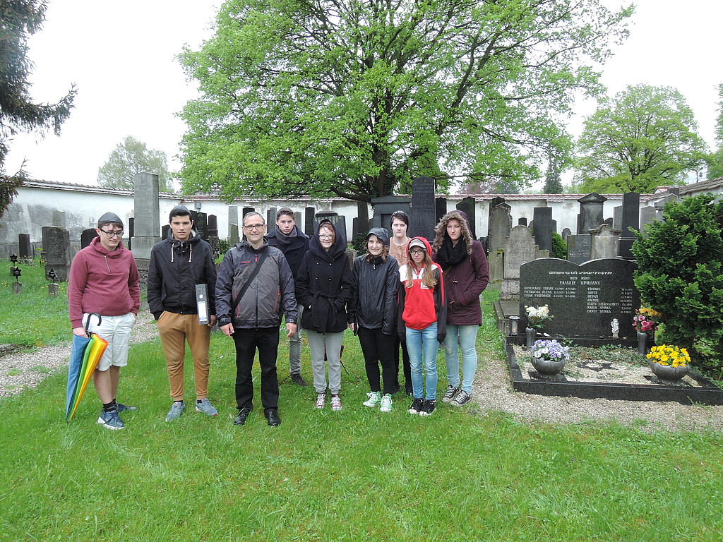 „Leben heute noch Juden in Steyr?“ Die Antwort des engagierten Zeitgeschichteforschers Mag. Karl Ramsmaier auf diese Schülerfrage lautete: „Nein, der letzte Steyrer Jude war Herr Friedrich Uprimny, er starb in den 1990-iger Jahren und der Stiegenaufgang zum jüdischen Friedhof ist nach ihm benannt.“ Beim Stadtrundgang deckte er den interessierten Ethikschüler/innen der HAK/HASCH Waidhofen/Y mit Begleitlehrer Dr. Wagner die vielen Spuren der bis 1938 beträchtlich großen jüdischen Gemeinde nach und nach auf. Drei Geschäfte gehörten vor 1938 allein auf dem Hauptplatz jüdischen Familien, ehe sie enteignet und arisiert wurden. Die ehemalige Synagoge beherbergt heute eine Bank, eine Stahlstele an der Außenfassade erinnert aber an die frühere große Bedeutung für die jüdische Kultusgemeinde vor Ort. Mit Protokollausschnitten aus Gemeinderatssitzungen, Fotos vom letzten Rabbiner und berührenden Erzählungen von Begegnungen mit den Nachkommen der Steyrer Juden, die immer wieder aus London, Spanien, den USA, Israel und Australien zu den Gedenkanlässen kommen, ließ er das Leben der ehemaligen jüdischen Bevölkerung sehr authentisch aufleben. „Mir bleibt in Erinnerung, dass der 60-jährige Sohn beim erstmaligen Besuch am Grab seines am jüdischen Friedhof in Steyr begrabenen Vaters mit Tränen in den Augen die Erde geküsst hat“, sagte Dewran am Ende des beeindruckenden Stadtrundganges. Das örtliche Mauthausenkomitee mit Mag. Ramsmaier als Leiter hat am jüdischen Friedhof auch eine sehr beeindruckende Gedenkstätte für die 86 Holocaustopfer der Steyrer Juden anbringen lassen.