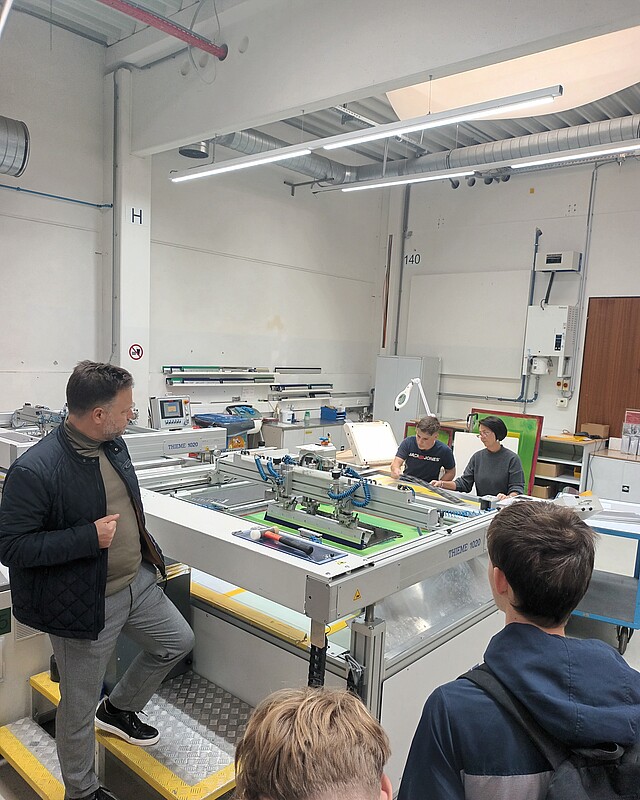 Herr Stefan Beck führte uns durch die verschiedenen Bereiche der Produktion von Beschilderungen, Beschichtungen, usw. und gab interessante Insights in die Arbeitsabläufe und Betriebsphilosophie des Unternehmens.