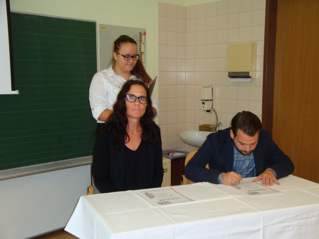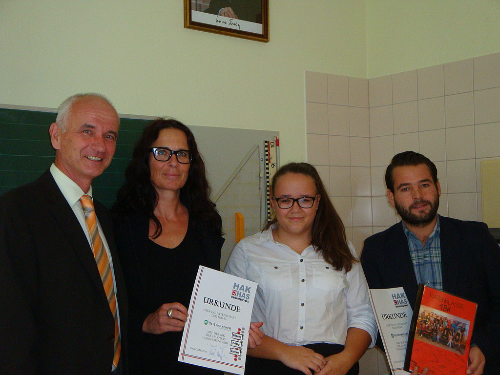 Die Stadtgemeinde, vertreten durch Magistratsdirektor Mag. Christian Schneider, Stadträtin Beatrix Cmolik und Personalchef Christoph Kalteis, übernahm die Patenschaft für die 1. Klasse Handelsschule. Die Seisenbacher GmbH, vertreten durch Herrn Paul Edelsegger, übernahm die Patenschaft für die 1B HAK.