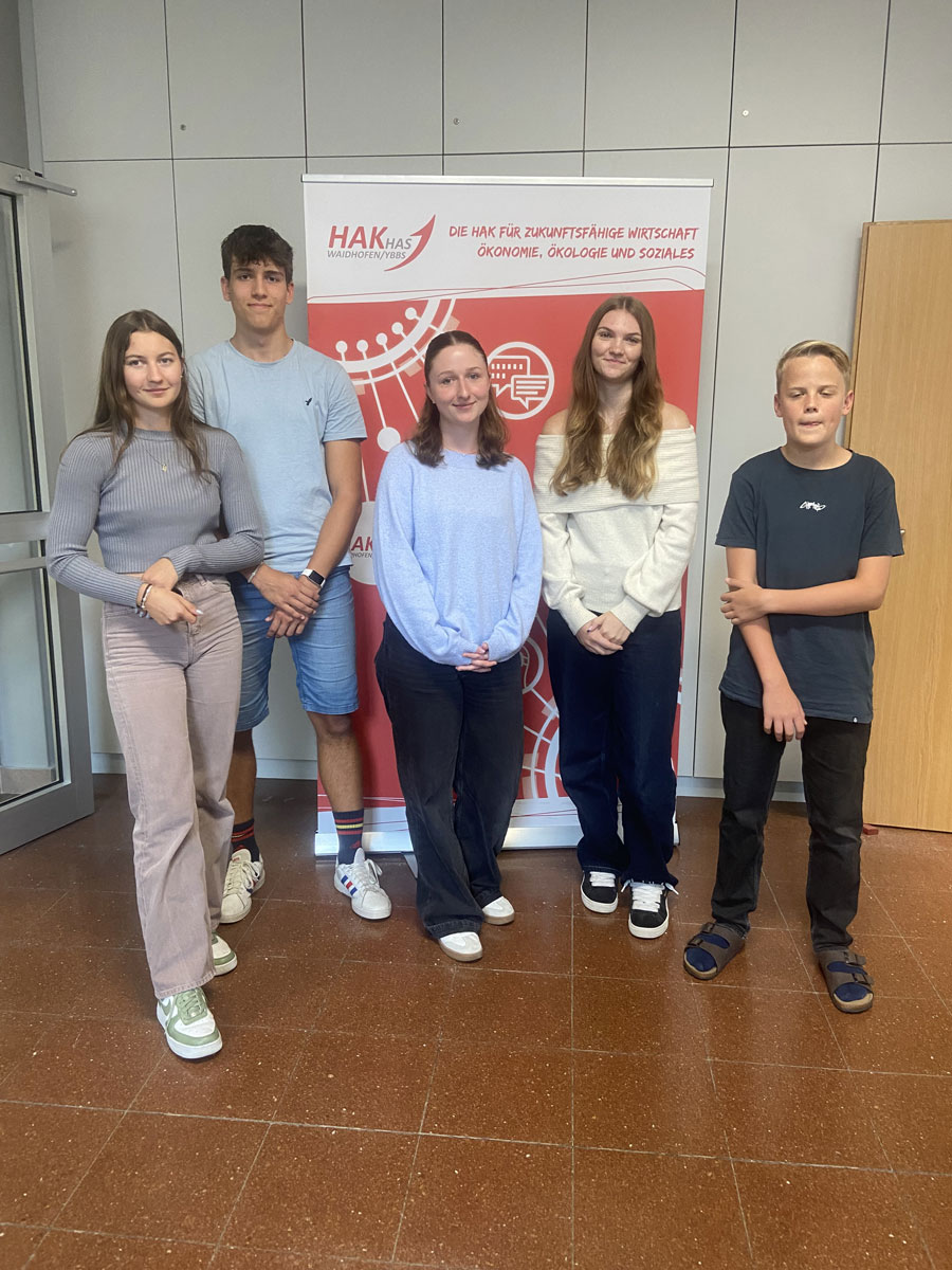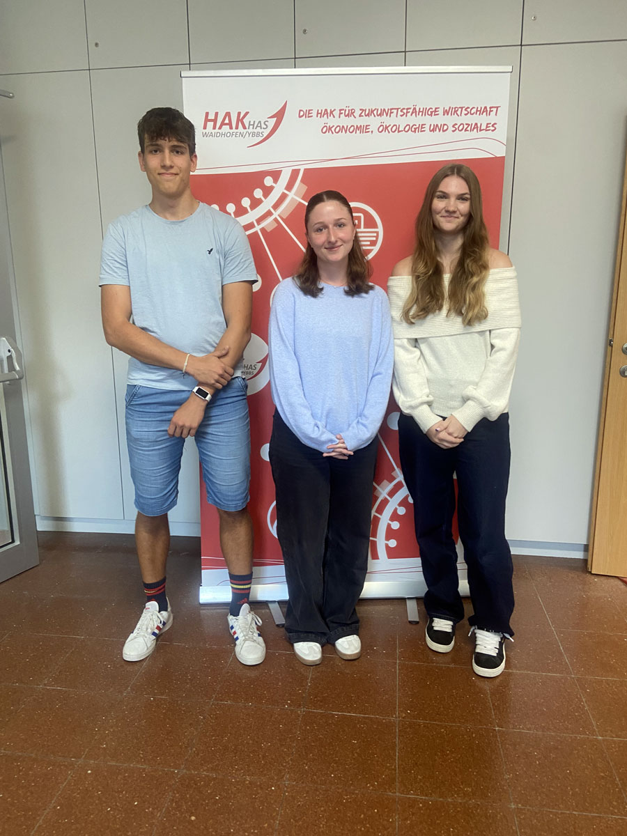 Gratulation an die neue Schulsprecherin Emilia Heim (4AK), an die erste Stellvertreterin Carina Halsmayr (4AK) und an den 2. Stellvertreter Valentin Forsthuber (3AK): Unterstützt wird die Schülervertretung von Marie Haberfellner und Daniel Michalek. Die Schulgemeinschaft gratuliert sehr herzlich und freut sich auf die Zusammenarbeit im Schuljahr 2025/2026.